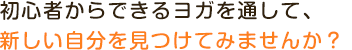 城陽ヨガスタジオは、初心者の方でも安心して学ぶことができるヨガスタジオです。講師の東ゆいもダイエットがきっかけでヨガを始めたように、皆様もふとしたきっかけで始めてみませんか?自分の心と身体に語りかけるヨガは、自分を見つめ直すきっかけにもなりますよ。